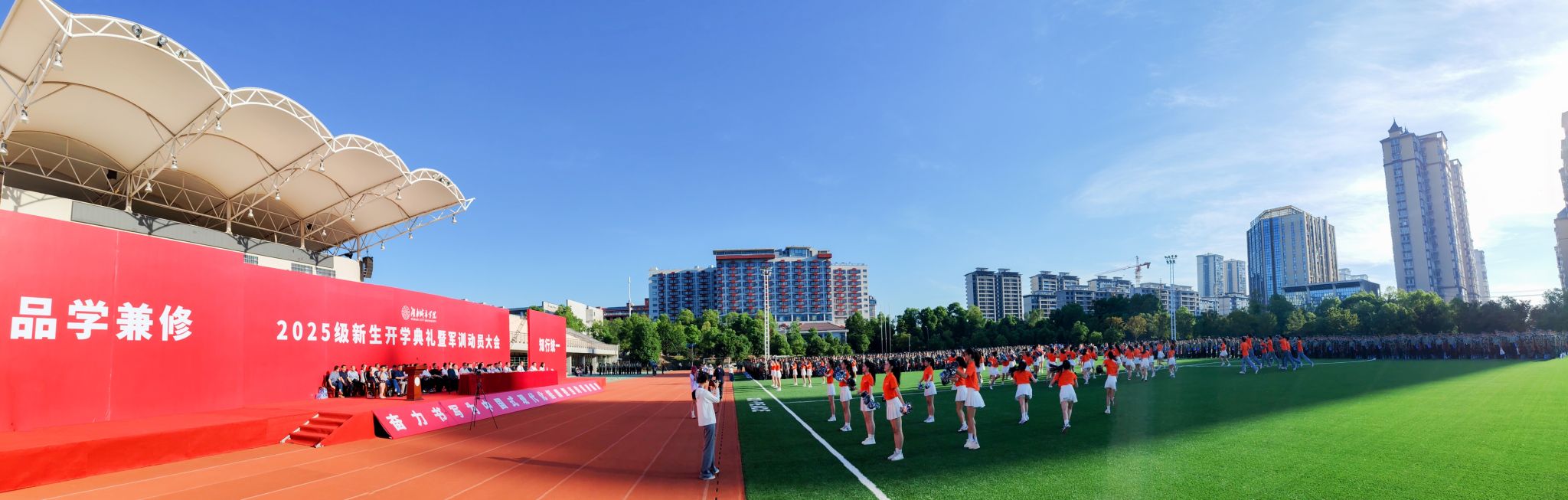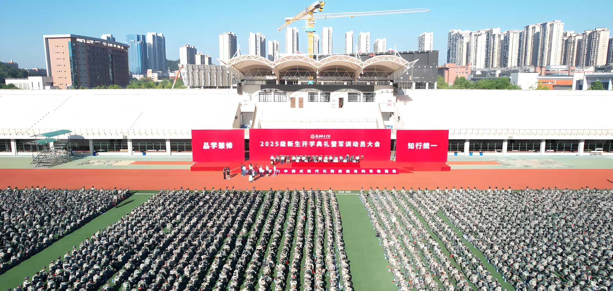 本网讯 苦尽甘来,十年寒窗终圆梦。乘风破浪,万里晴空任尔飞。9月17日上午,开云在线开户首页/登录/入口2025级新生开学典礼暨军训动员大会在学校东田径场举行,6600余名2025级本科生、研究生新生承载着殷切期望、怀揣着青春梦想,在城院开启人生新征程。校党委书记何振寄语2025级新生:要以“城”之名,砥砺报国,共织城市摇篮之美,充分认识、尊重、顺应城市发展规律,探索智慧城市建设新领域,在未来城市的画卷上留下青春注脚。