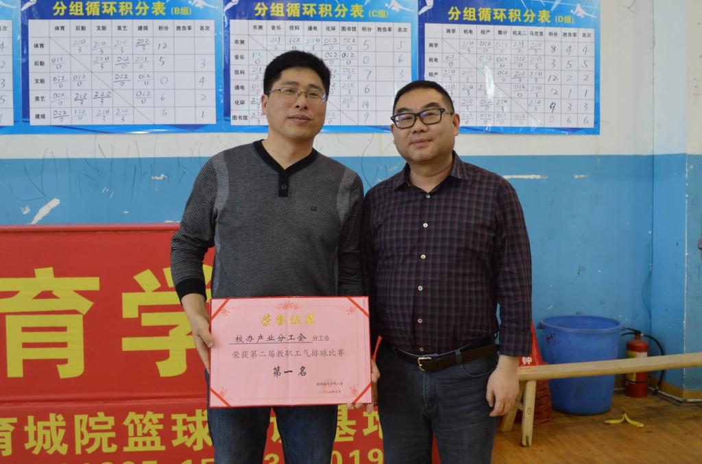 (本网讯)5月10日,由校工会主办、体育学院协办的我校第二届教职工气排球比赛落下帷幕。全校22个分工会经过分组循环预赛、交叉淘汰决赛共63场的激烈角逐,最终,体育学院分工会获得特等奖,校办产业分工会获得第一名,美术与艺术设计学院分工会、化学与环境工程学院分工会、土木工程学院分工会等单位分获2-8名。副校长、工会主席郑卫民观看了决赛并为获奖分工会颁奖。