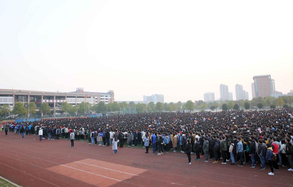 (本网讯)3月12日清晨,我校在田径场举行2018年上学期首次升旗仪式。校党委副书记汤放华、副校长雷存喜,各二级学院党委(党总支)副书记、辅导员及八千余名学生参加了升旗仪式。雷存喜主持升旗仪式。