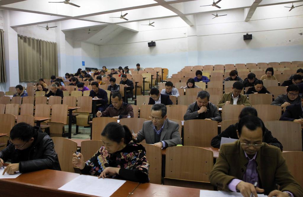 本次考试内容包括了十九大报告、审核评估、教学工作和学生工作等相关知识,一律采取闭卷方式答题。为确保考试效果,教学质量监控与评估中心提前下发了考试通知和学习资料,并对评建知识考试进行广泛宣传,引导全体教职工积极学习审核评估相关知识。本次考试分两批进行,3月13日晚和16日晚,校领导、职能处室全体教职工和二级学院全体教职员工分别进行了评建知识考试。考试期间,校党委书记罗成翼、党委副书记汤放华、副校长雷存喜进行了巡考,并于考前对考场纪律作了严肃要求。