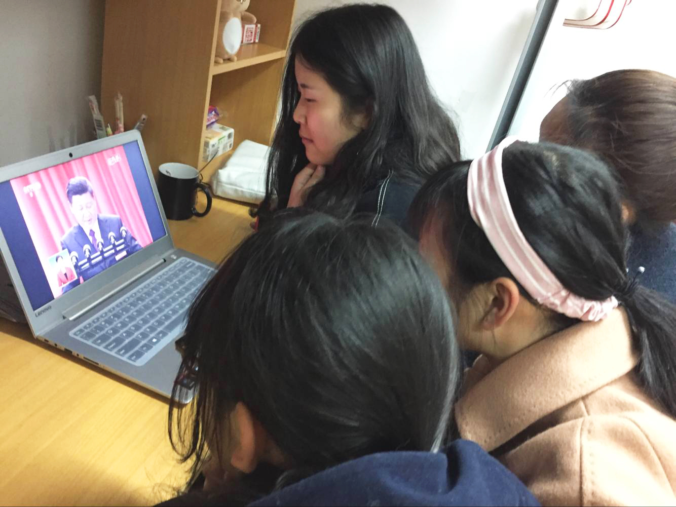 (本网讯)第十三届全国人民代表大会第一次会议和第十三届全国人民政治协商会议闭幕式于3月20日上午9时在北京顺利召开。我校师生利用课余时间,通过手机、电脑、电视等多种渠道收看“两会”闭幕式,并共同交流心得体会。