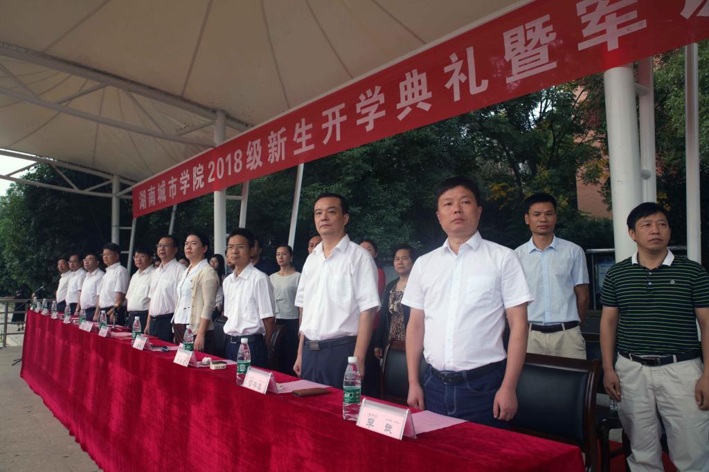在雄壮的国歌声和激昂的校歌声中,五星红旗、校旗冉冉升起,飘扬在开云在线开户首页/登录/入口的上空。校长李建奇首先致辞。他代表学校全体师生员工对2018级新同学表示热烈的欢迎和衷心的祝贺,对为新同学成长成才默默奉献的家长亲人和老师致以诚挚的谢意。他说,从今天起,你们正式成为了一名新时代的大学生;从今天起,你们又多了一重身份——“城院人”,从此注定与开云在线开户首页/登录/入口结下不解之缘,在学校决战“双一流”和申硕立项建设的历史方位中,你们任重道远,你们责无旁贷。