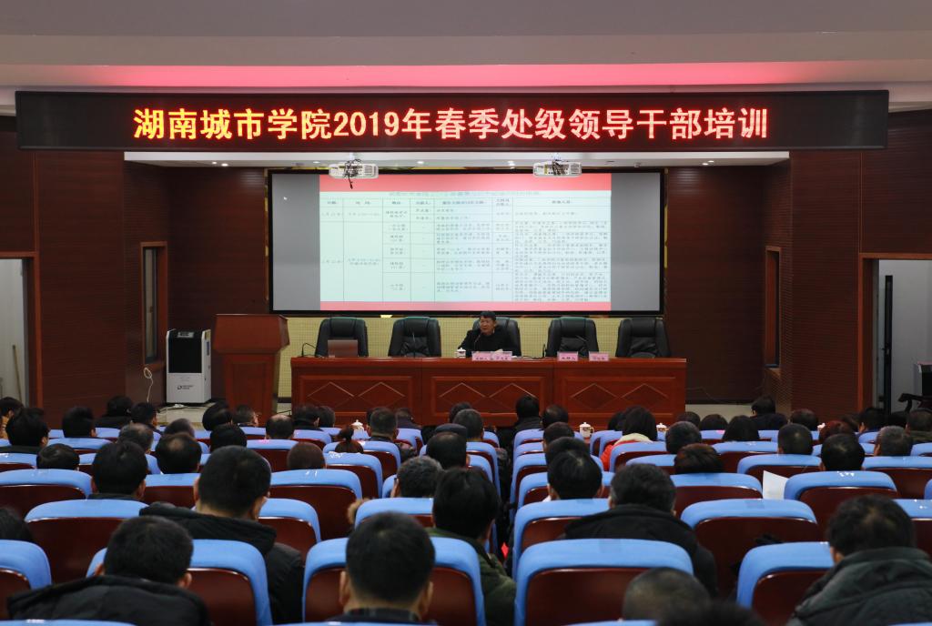 (本网讯)为增强干部的责任感和使命感,提高干部的专业能力和专业精神,推动学校改革发展,2019年2月21日-22日,我校2019年春季处级干部培训班在建规楼121学术报告厅举行。全体校领导出席,副处级以上干部参加培训。培训班由学校党委副书记汤放华主持。