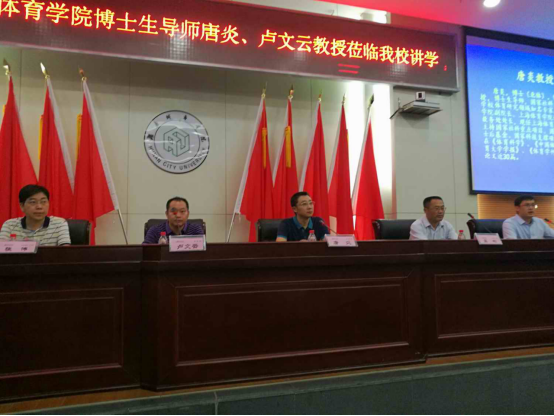 (本网讯)2019年6月28日上午,上海体育学院博士生导师唐炎、卢文云教授应邀在图书馆报告厅为我校师生作了学术讲座。学校学科建设与发展规划处相关负责人,体育学院全体教职工、2016级考研学生以及2017级全体同学聆听了讲座。