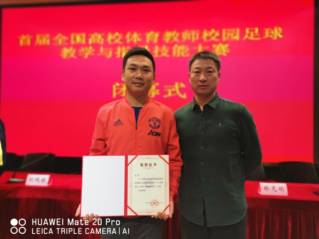 此次大赛是全国高校体育教师的专项教学与指导技能大比拼,分为课程教学组(从事高校足球课程教学的教师)和竞训指导组(招收高水平足球运动员学校教师)。我校李伟老师参加的是课程教学组的比赛,参赛选手有来自清华大学、浙江大学、上海交通大学、华中师范大学等高校的85位教师。课程教学组的竞赛内容为网络评审与现场测试两个环节,网络评审包括教学设计与教学实践,现场测试包括体能测试和专项技能。参赛教师的最终成绩为各项成绩折算后的总和,本次共评出了一等奖13人,二等奖25人,三等奖30人。在此次比赛中,李伟老师克服困难,顽强拼搏,取得了教学设计与教学实践比赛第七名,总成绩三等奖的优异成绩。(郭羽)