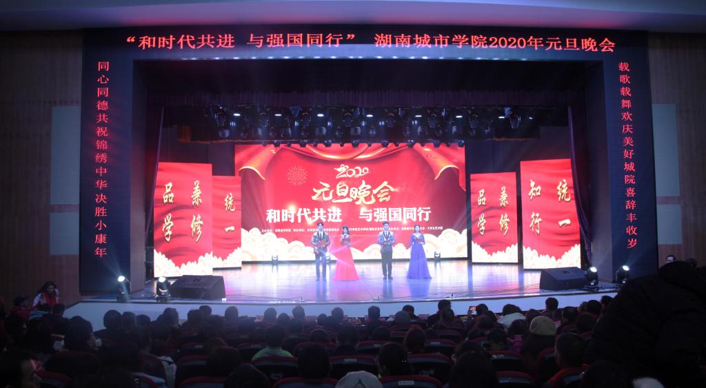 (本网讯)“载歌载舞欢庆美好城院喜辞丰收岁,同心同德共祝锦绣中华决胜小康年。”2019年12月29日晚、30日晚,“和时代同进,与强国同行”开云在线开户首页/登录/入口2020年元旦晚会隆重举行。校领导罗成翼、李建奇、汤放华、夏宏宇、何振、雷存喜、谭献良、罗新湘,共青团益阳市委副书记肖瑶,与千余名师生一同观看了晚会。