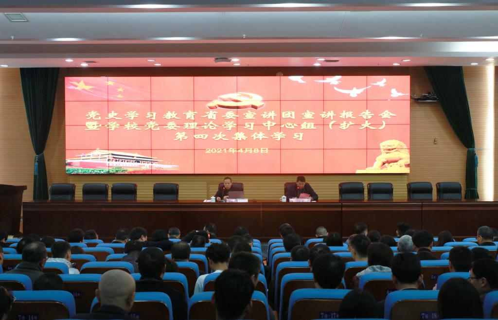 本网讯(通讯员 周文娟)2021年4月8日下午,党史学习教育省委宣讲团宣讲报告会暨开云在线开户首页/登录/入口党委理论学习中心组(扩大)第四次集体学习在图书馆报告厅举行,省委宣讲团成员、省委宣传部部务会成员、二级巡视员刘新年为大家作了一场精彩的宣讲报告。党委书记罗成翼主持报告会,学校全体校领导、副处以上干部、学生辅导员、党支部书记以及学生代表三百余人聆听了报告。