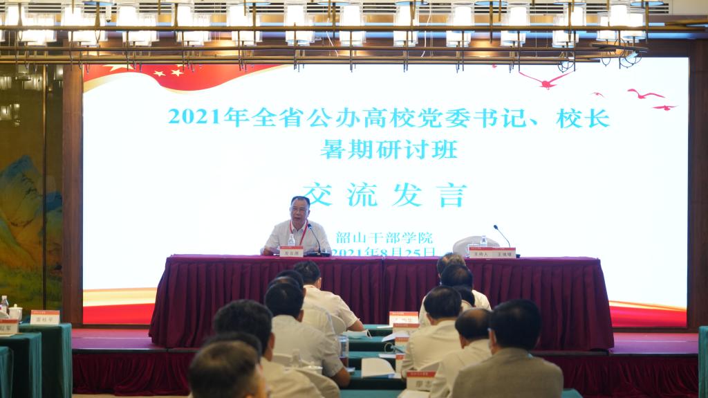 本网讯 2021年8月24日—25日,2021年全省公办高校党委书记校长暑期研讨班在韶山干部学院举行。省委副书记乌兰出席开班仪式并讲话,副省长谢卫江主持开班仪式。我校党委书记李建奇、校长汤放华参加了研讨班。