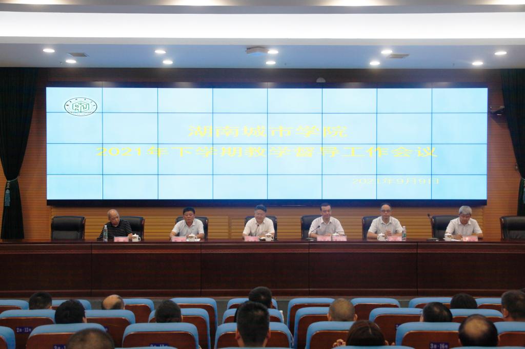 本网讯(通讯员 马细珍 摄影 邱元龙)2021年9月9日晚,学校在图书馆报告厅召开2021年下学期教学督导工作会议。校长汤放华发表讲话,副校长雷存喜主持会议,各二级学院分管教学工作的副院长、教务处负责人、教学督导、教学质量监控与评估中心全体人员参加会议。