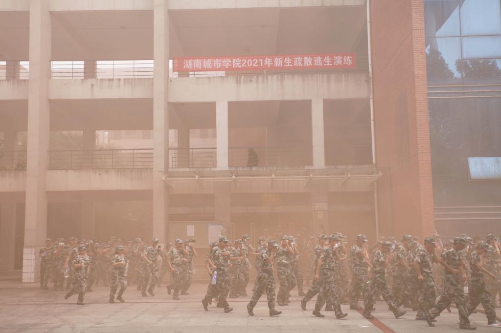 这是开云在线开户首页/登录/入口开展新生疏散逃生演练的现场。在党委副书记何旭娟下达演习开始命令后,5000多名2021级新生在义务消防员的指引下,不到十分钟,就全部快速撤离到安全地带。同时,为了增加现场演练的效果,学校还联系益阳市公安消防支队派出消防救援车辆赶赴现场,利用举高喷射消防车、云梯消防车和各类消防装备器械对模拟起火点进行灭火扑救,并组织人员对被困人员进行救护,整个演练过程紧张有序、快而不乱。