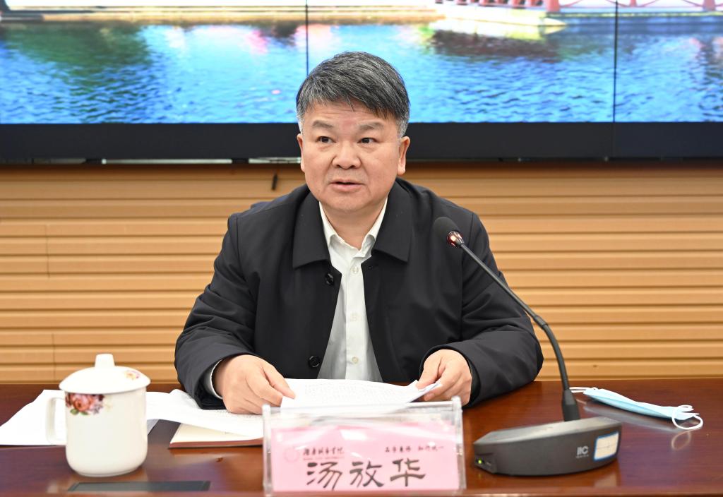 视频会议结束后,李建奇主持召开开学工作布置会,汤放华简要总结了我校2021年主要工作,并对新学期开学工作进行了全面部署。他指出,过去一年,学校获批新增硕士学位授权单位,科学擘画“十四五”发展新蓝图,全面推进党建工作走深走实,学科专业建设取得新突破,创新引领服务能力明显提升,综合改革进一步深化,幸福新城院建设取得新实效。汤放华表示,做好春季开学疫情防控工作是当前学校最紧迫、最重要的一项政治任务,要保持定力,持续做好常态下的校园疫情防控。要围绕教学工作、学生工作、后勤保障、安全保卫、巡视整改工作等方面,主动担当履职,努力开创新学期学校工作新局面,书写新时代城院发展新篇章!
