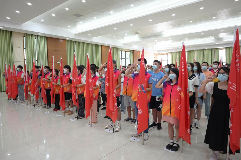 随后,与会领导为实践团队代表授旗,全体与会团队成员庄严宣誓。