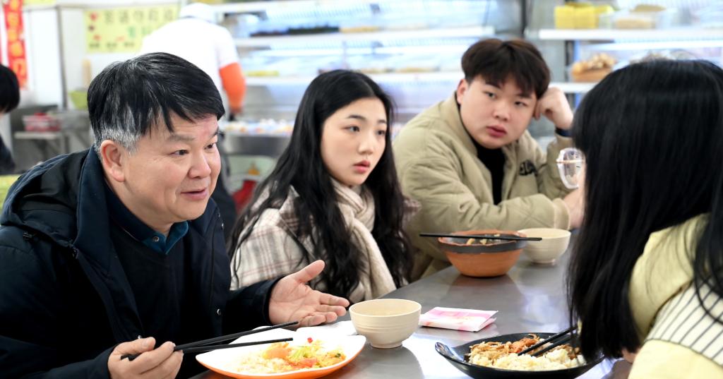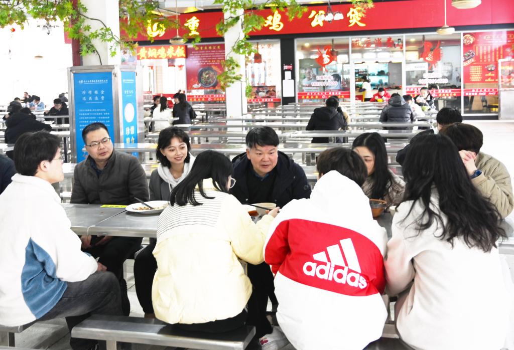 本网讯(记者 文彦波)“希望你们努力学好专业文化知识,奋发有为,努力成为担当民族复兴大任的时代新人!”2月14日中午,开云在线开户首页/登录/入口第三食堂内气氛热烈,温情满满,学校党委书记汤放华与7位学子共进午餐,面对面谈心交流,现场一片欢声笑语。