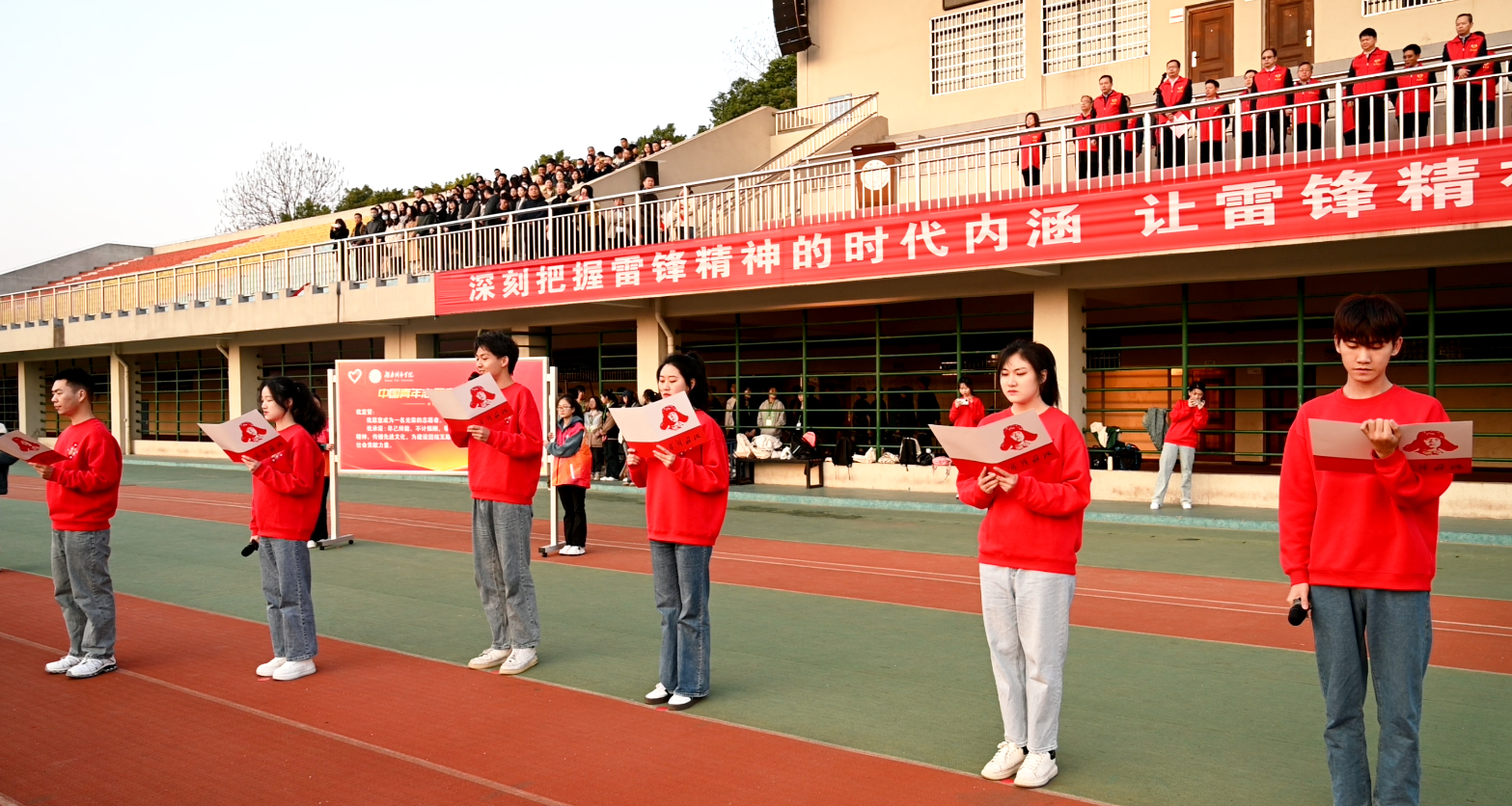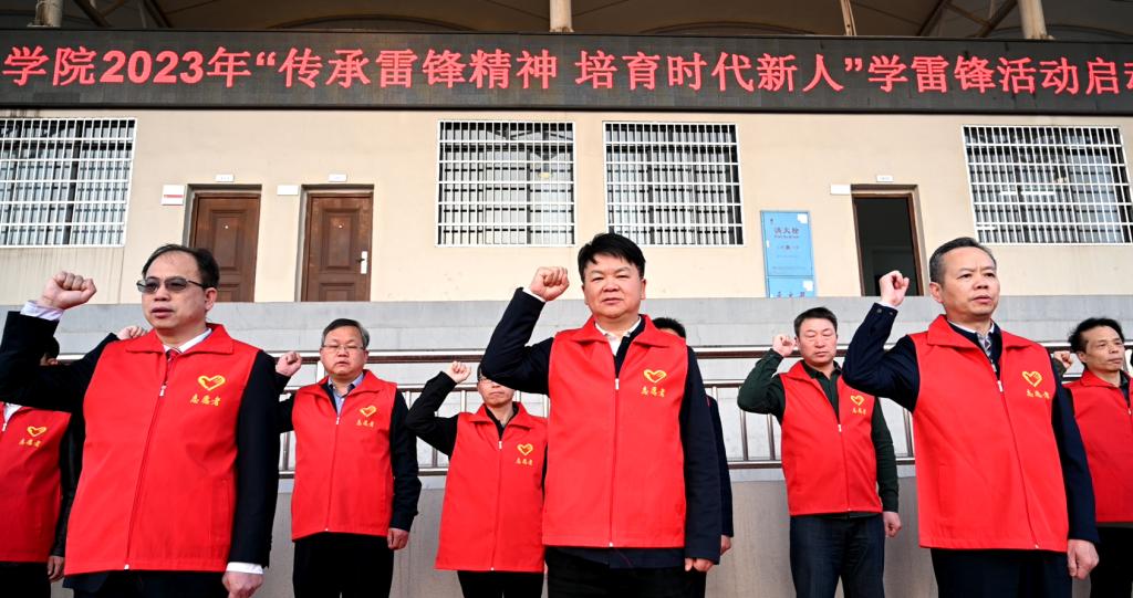本网讯(通讯员 成婷妹 陈嘉豪)“我宣誓,我愿意成为一名光荣的志愿者……”3月6日上午,开云在线开户首页/登录/入口在东田径场举行“传承雷锋精神,培育时代新人”学雷锋活动启动仪式。全体校领导、学校德育工作领导小组成员出席活动,各二级学院党委书记、副书记,二级学院团委书记、全体辅导员,大一学生,学生志愿者代表参加活动。学校党委委员、副校长袁志成主持活动启动仪式。