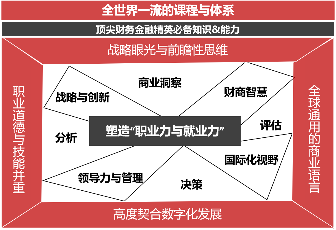 通过将备受海内外学术界、海外名校及雇主认可的ACCA特许公认会计师执业资格认证课程嵌入到财务管理专业本科培养体系中,旨在培养熟练掌握国内外会计、审计准则及相关法规,掌握顶尖财务金融精英必备知识和能力,具备国际化视野与前瞻性思维,能在大型跨国公司、外资机构、会计师事务所、金融机构、政府部门从事财务和管理相关工作,集财会、管理、商业及数字化于一身的高级管理人才。