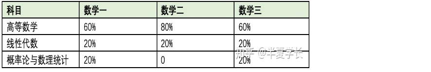 数学:分为数学一、数学二、数学三,满分150分