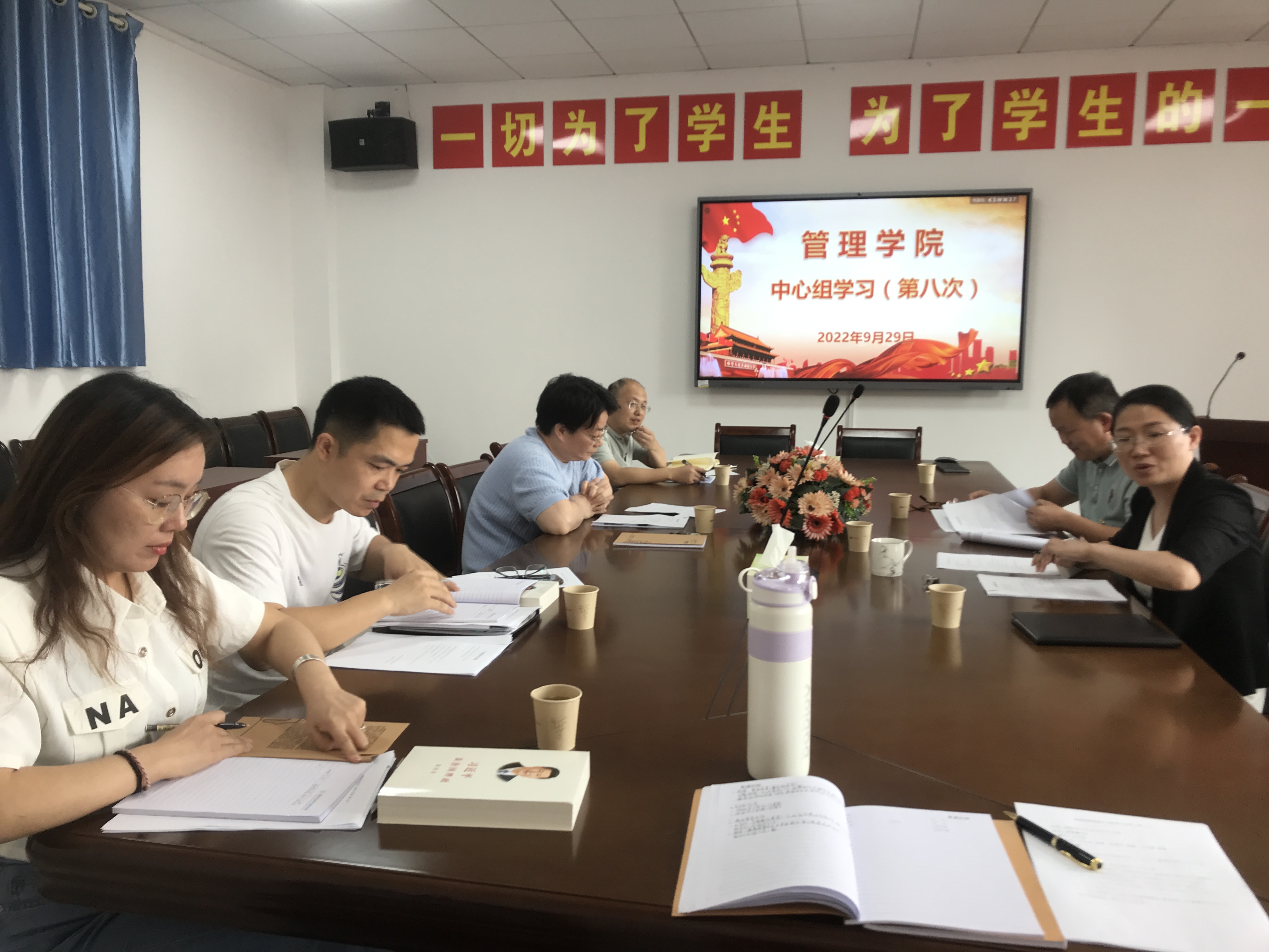 2022年9月29日下午3点30分,学院党委理论中心组在管理楼622会议室开展了集中学习,学习由党委书记王正安主持,党委理论中心组全体成员参加了此次学习。