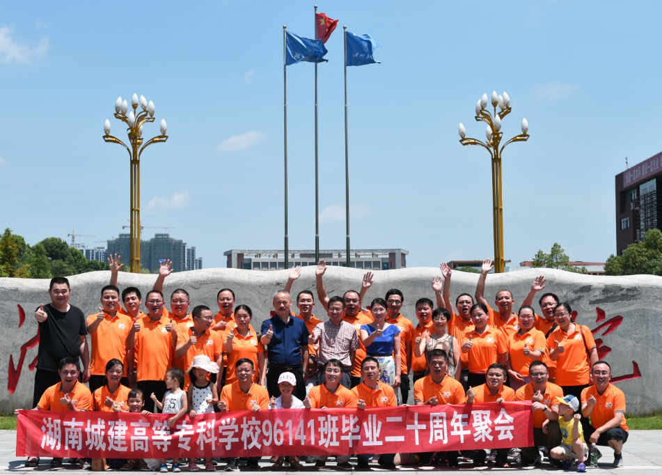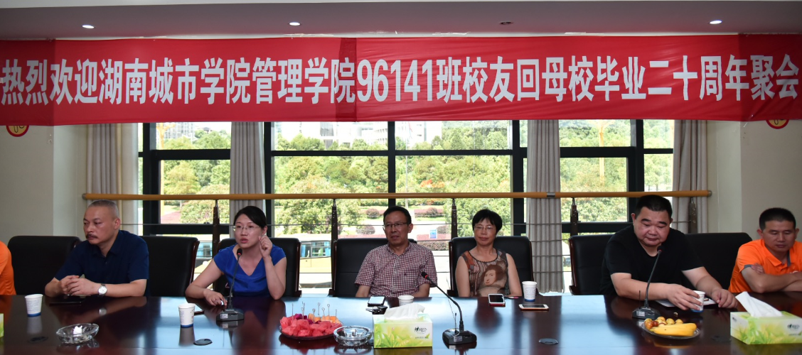2019年7月27日上午,冒着炎炎烈日,工程造价专业96141班校友毕业二十周年荣归母校系列活动隆重举行。返校聚会的校友们首先在原湖南城建高等专科学校和校本部进行了参观,回忆了往日的学习、生活的点点滴滴,同时感受到了学校的改革发展。原湖南城建高等专科学校房地产系系主任薛姝教授从头到尾进行了陪同。上午10:20左右,在办公楼一会议室,返校聚会的24位校友与管理学院领导举行了96141班毕业二十周年师生座谈会。座谈会由管理学院党委副书记蔡英杰老师主持。在座谈会上,学院党委书记徐习军教授首先代表学校及学院对各位校友毕业二十周年回母校聚会表示热烈地欢迎。随后学院院长孙倩教授简要介绍了管理学院目前的现状,希望各位校友对管理学院的发展献计献策。校友们为感谢师恩,分享了自己二十年来的从业经历和感想,并对学院发展和专业建设提出了中肯建议。最后管理学院党委副书记王润华教授做了总结发言,他首先对校友们时隔十年荣归母校表示诚挚欢迎,对校友们在事业上取得的成绩表示热烈祝贺,指出母校是校友永远的精神家园和港湾,同时也希望校友们充分发挥自身的资源优势,为母校、学院及专业的发展多做贡献。座谈会结束后,校友们与到会学院领导分别在学校南门及管理楼前进行了合影留念。