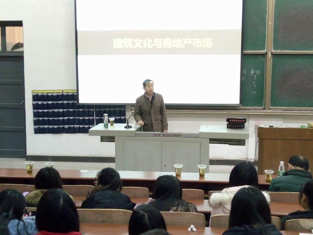 2015年12月4日上午10点,管理学院房地产经营管理8710班校友徐志革先生受邀来我校在1-107室进行建筑文化与房地产市场分析的讲座。