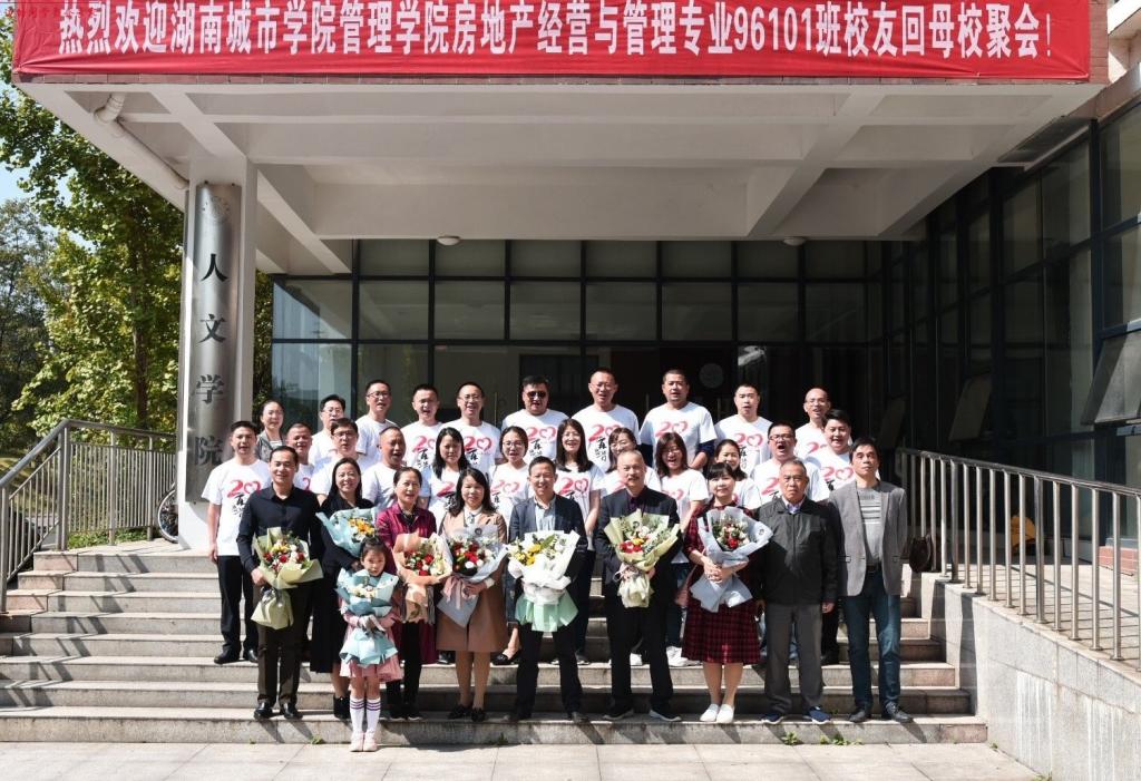 会议开始,学生为各任课老师献上饱含谢意的鲜花和礼物,感谢大学期间老师们的淳淳教诲。随后,校友们介绍自己的经历。校友们畅所欲言,或回忆校园的美好时光,或谈及自己的工作情况,同时也表达了对母校的感谢和祝福。班长黄政章回顾了当年从入学到毕业的经历。他表示,作为一名房地产经营与管理专业毕业的学子,他走过了一段不平凡的道路,而正是因为当年在母校所学到的做人、做事、做学问的准则,使他在人生的成长路上不断进取,没有被任何困难和挫折所折服。