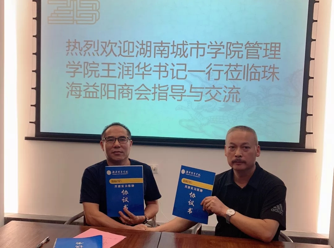 8月11日下午,珠海市湖南益阳商会与开云在线开户首页/登录/入口工作交流座谈会暨共建就业、实习基地协议书签约仪式在我会举行。会长孟建华与开云在线开户首页/登录/入口管理学院党委副书记王润华正式签订了两份协议。益阳市人民政府驻广州办事处主任王剑鸣、珠海湖南商会会长刘里仁、益阳商会名誉会长张哲夫以及益阳商会部分领导出席座谈会并见证签约。