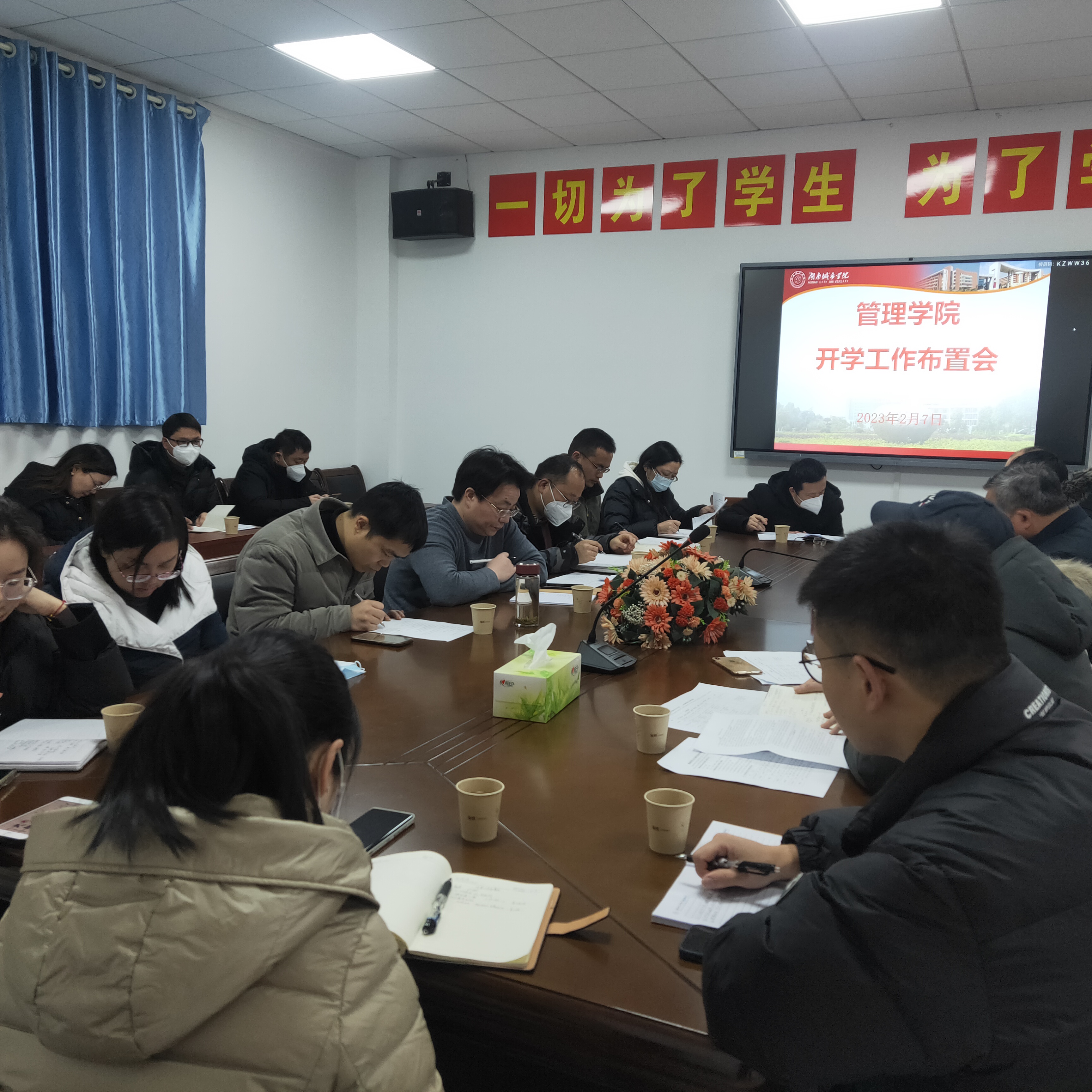 2023年2月7日上午10:00,管理学院在管理楼622召开2023年春季开学工作布置会。会议由院长孙倩主持,参加会议的有院党委书记王正安,院长孙倩,副院长刘刚、任国平,院党委委员王方俊、周琼,各教研室主任,各支部书记,三办的老师等。