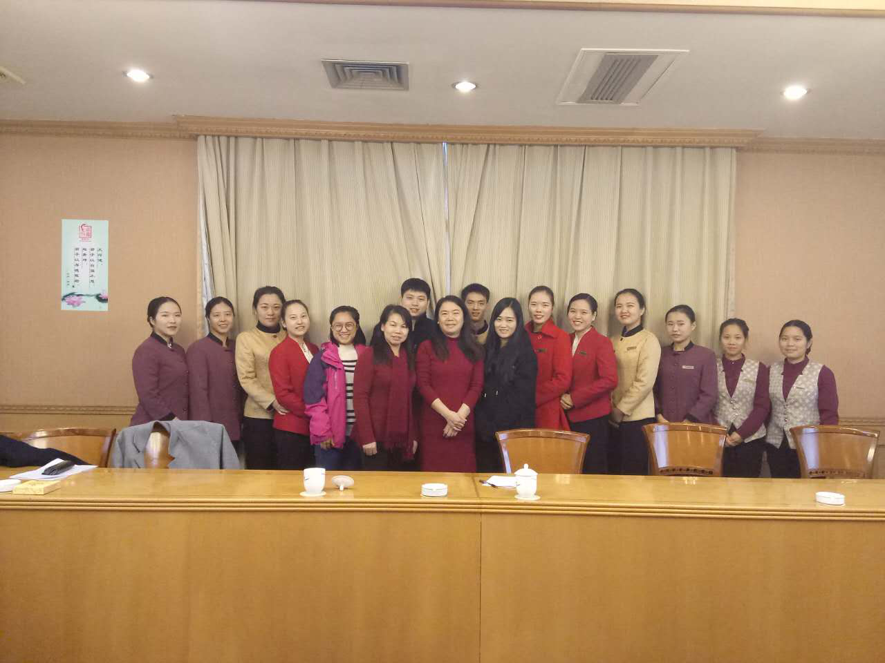 2016年12月25日,开云在线开户首页/登录/入口党委党员、纪委书记姚春梅教授、开云在线开户首页/登录/入口管理学院院长汤腊梅教授,顶着寒风细雨来到湖南宾馆,深入实习基地检查指导实习工作并看望在这里实习的商学院的学生。