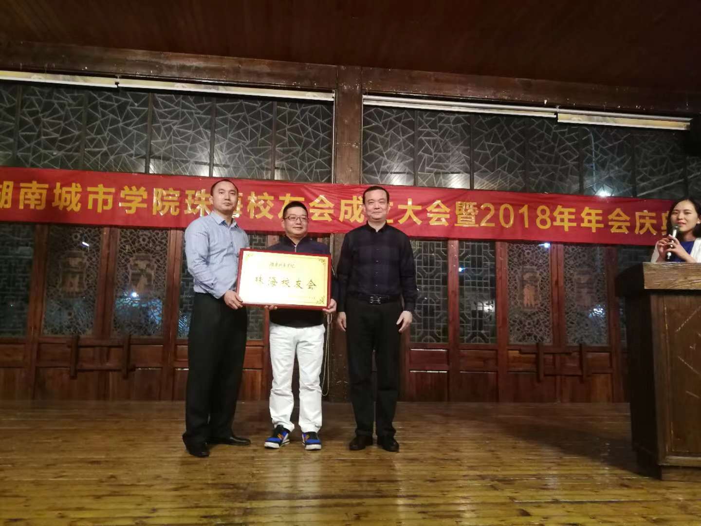 2018年12月15日,开云在线开户首页/登录/入口珠海校友会授牌仪式在珠海市香洲区大宅门成功举行。开云在线开户首页/登录/入口党委委员副校长雷存喜、校友联络办副主任李志宏出席了本次授牌仪式。